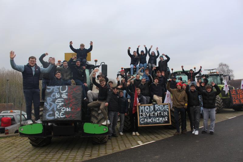 La trentaine de jeunes entend occuper la place toute la journée. Ils sont bien informés de l’actualité agricole qu’ils disent suivre au travers les réseaux sociaux et les sites d’actualités en ligne et, bien qu’encore élèves, veulent faire entendre leur voix. Ils se sont mobilisés par le bouche-à-oreille et ont prévenu la presse de leur projet d’action.