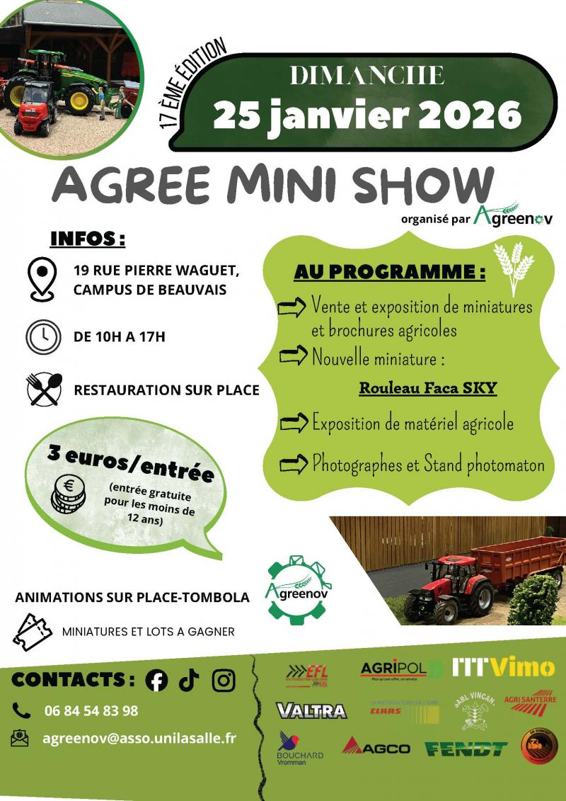 Le dimanche 25 janvier 2026, le campus de Beauvais accueillera la 17e édition de l’Agree Mini Show, un rendez-vous désormais incontournable pour les amateurs de monde rural. Organisé par l’association étudiante Agreenov, cet événement transforme le temps d’une journée l’école d’ingénieurs en un véritable sanctuaire du machinisme agricole, mêlant précision miniature et puissance réelle. Pour les organisateurs, cette journée représente «l’évènement de l’année à pas manquer» , une occasion de rassembler une communauté de passionnés qui, selon Brice Giron, membre de l’association, préfèrent souvent appeler la manifestation «l’exposition de Beauvais» plutôt que par son nom officiel.