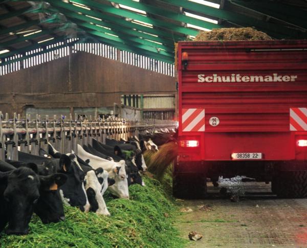 C'est suite à la crise de 2008 que l’EARL de Kerbalanen a revu sa stratégie d’alimentation pour gagner en autonomie : valoriser l’herbe dans la ration de manière à réduire la consommation de maïs et par conséquent celle de correcteur azoté. « Dans un premier temps, nous avons investi dans une remorque faucheuse autochargeuse pour se lancer dans l’affouragement en vert. Une machine sousdimensionnée qui a rapidement montré ses limites après seulement trois saisons. C’est en mars 2013, que nous sommes passés à la vitesse supérieure avec l’achat d’une remorque autochargeuse Schuitemaker de 35 m3 (DIN) et d’une faucheuse frontale », retracent Dominique et Nathalie Oisel qui sont, à l’aide d’un salarié, à la tête d’un troupeau de 105 Prim’holstein (830 000 l de lait vendus sur la dernière campagne) sur 180 hectares. En incluant les 3 000 euros de surcoût pour le montage d’une prise de force frontale sur le tracteur, l’investissement approche les 100 000 euros. « L’investissement était osé, mais il s’est avéré que l’autochargeuse allait remplacer un certain nombre d’outils sur l’exploitation. »