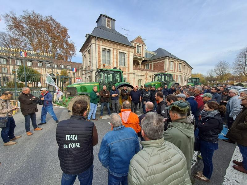 Les agriculteurs de l’Oise étaient réunis devant les grilles de la préfecture à Beauvais, à l’appel de la FDSEA et des JA, pour dénoncer l’application dès le 1er janvier prochain du mécanisme d’ajustement carbone aux frontières (MACF) et le double langage du Président de la République sur le traité Mercosur.